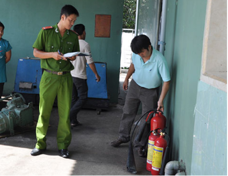 Bình chữa cháy sẽ được kiểm tra hàng tháng (30ngày), đây là những yêu cầu tối thiểu để thực hiện từ Bộ Công an.
