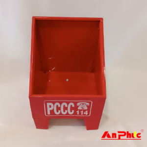 Mặt trước Kệ đựng 1 bình chữa cháy có dòng chữ “PCCC” và số điện thoại 114 – hotline cứu hỏa.