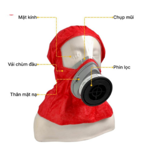 - Chùm đầu: Làm từ vải không dệt Lamilate 2 lớp, với khả năng chống thấm khí tuyệt đối, kết hợp với kính chắn giúp bảo vệ mặt khỏi hơi độc.
