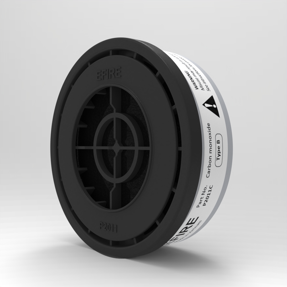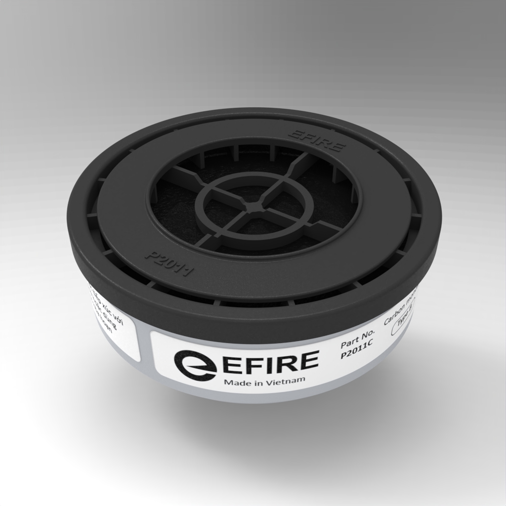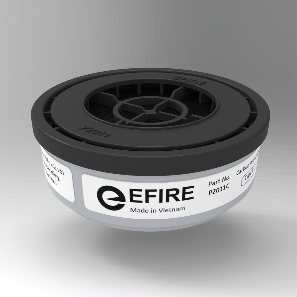 Phin lọc khói EFIRE P2011C được nghiên cứu và sản xuất tại Việt Nam. Sản phẩm được sản xuất và kiểm định chất lượng đạt tiêu chuẩn châu Âu EN 404:2005 đạt mức B (mức cao nhất áp dụng cho phin lọc khí CO).